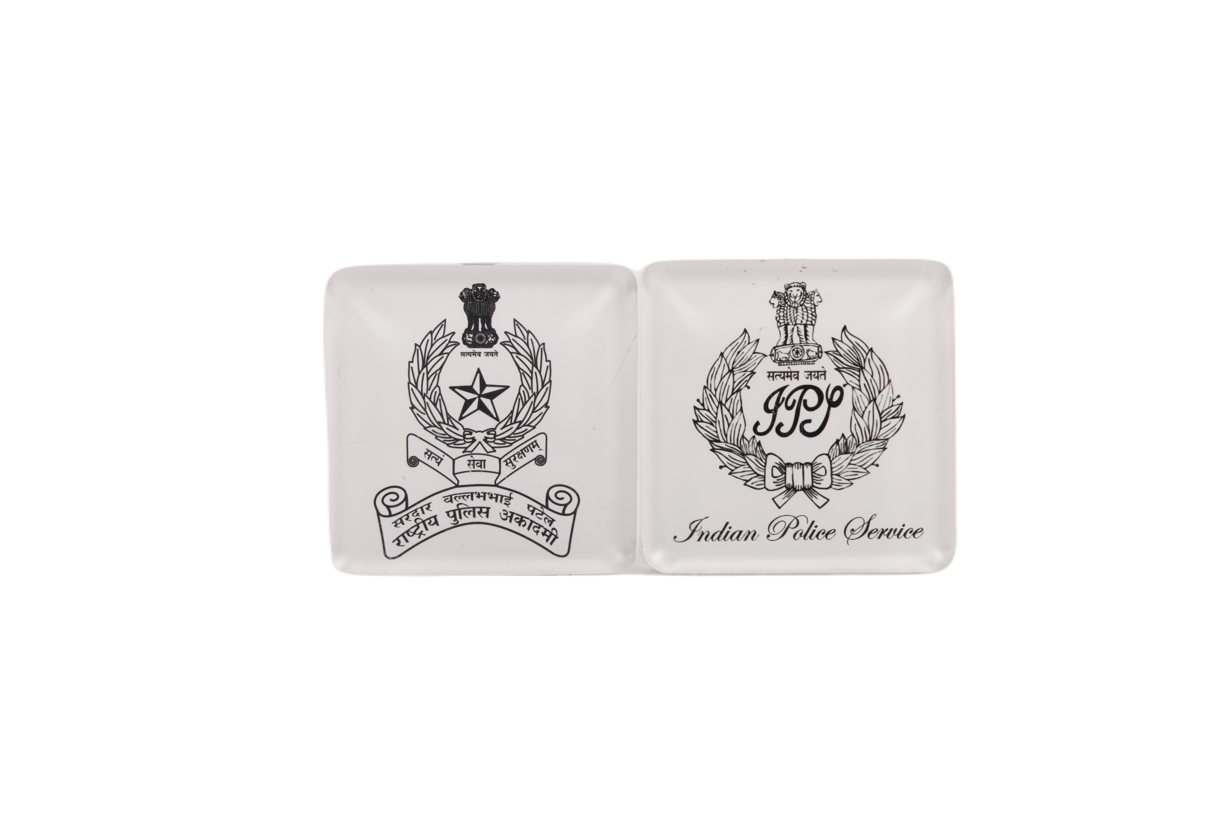 Acrylic paper weight with NPA & IPS logo