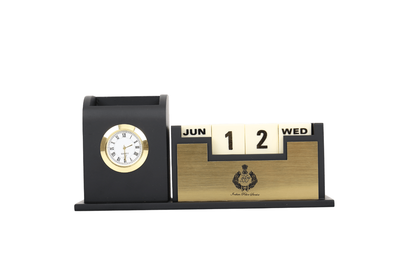 Table with date change cubes , watch and pen stand