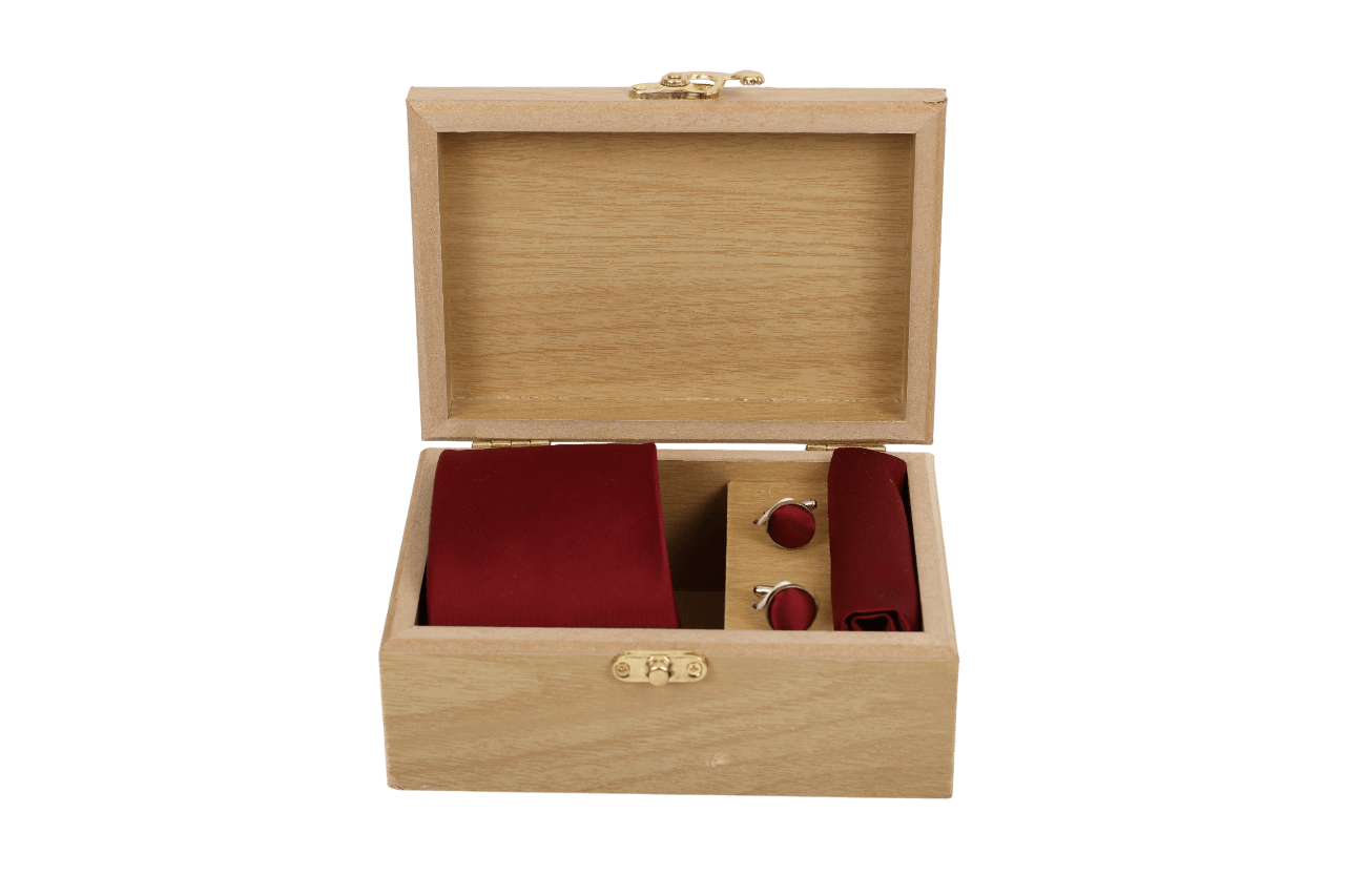 Imported micro fabric tie with pocket square in wooden box
